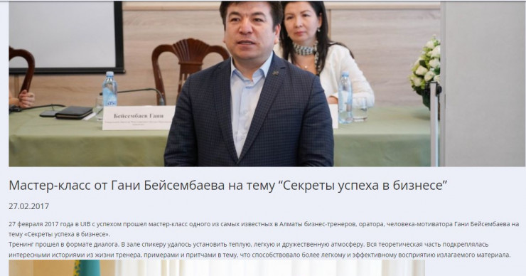 В интернете можно встретить информацию о том, что несколько лет назад Гани Бейсембаев проводил тренинги и мастер-классы по секретам успеха в бизнесе, коррекции психологического состояния, руководстве в образовании, самомотивации, саморегуляции и персональной эффективности.