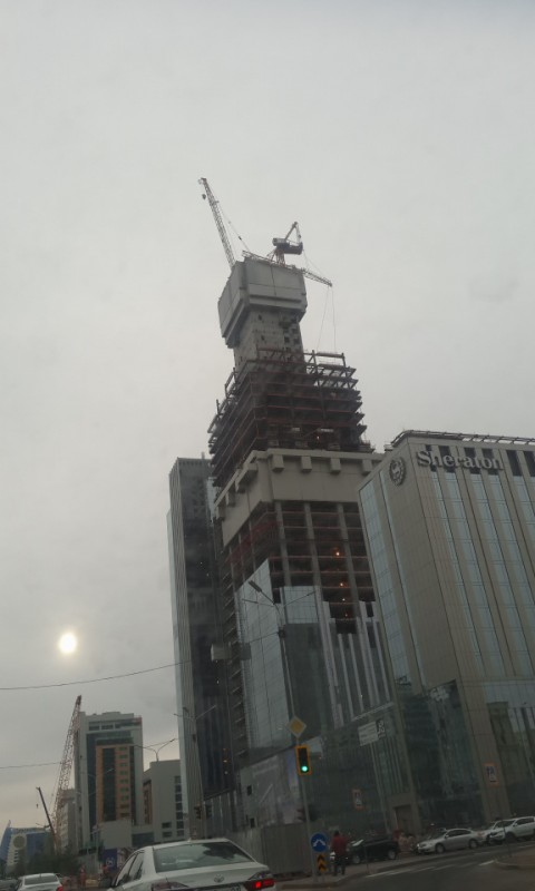 "Строящийся ЖК "Абу-Даби плаза", надломилась стрела башенного крана и повисла на тросах на верхнем этаже строящегося здания", - сообщил Иманкулов.