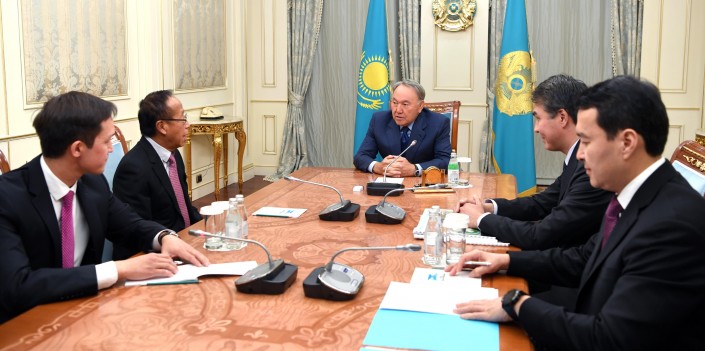 Алихан Смаилов (крайний справа) на встрече с основателем Hotel Properties Limited Онг Бэнг Сэнгом