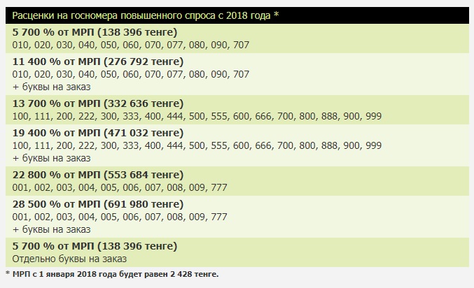 Владельцы транспортных средств при приобретении государственных регистрационных номерных знаков повышенного спроса (к примеру, 001, 002, 003, 004, 005, 006, 007, 008, 009,100,111, 200, 222, 300, 333, 400, 444, 500, 555, 600, 666, 700, 777, 800, 888, 900, 999) по своему желанию теперь смогут выбрать комбинацию букв, кроме комбинации из трех одинаковых букв, за которые с 1 января 2018 года вводится повышенная госпошлина.