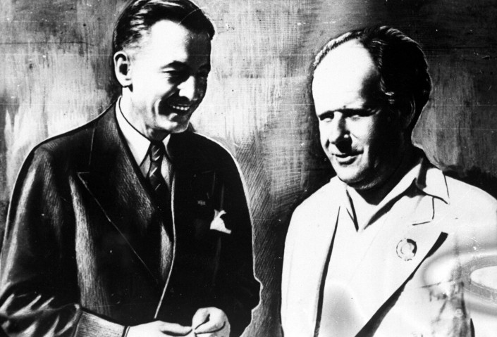 Сергей Эйзенштейн во время встречи с представителем торговой палаты США Джонсоном Э. Алма-Ата, 1941 год.