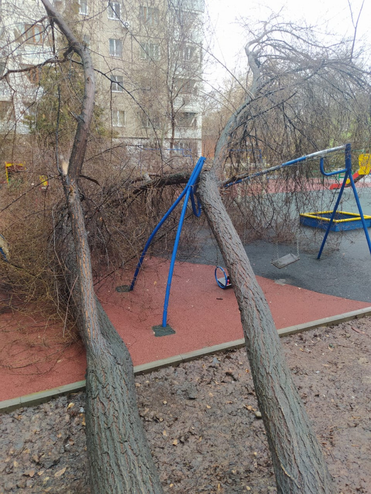 Очевидцы сообщили о падении крупного дерева из двух стволов на детскую площадку в микрорайоне Таугуль-1 в Ауэзовском районе.