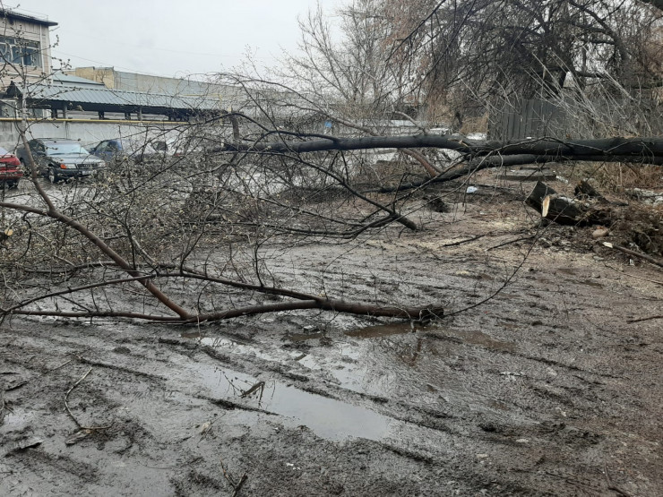 В ДЧС Алматы также сообщили о падении другого дерева по улице Ратушного, 72. При падении пострадало два автомобиля.