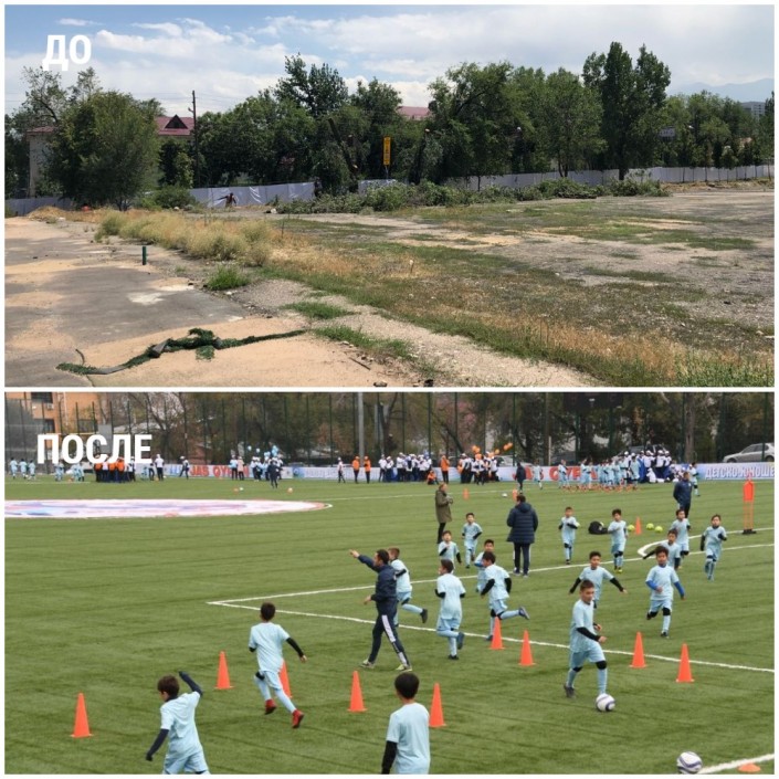 В Алматы после реконструкции стадиона "Спутник" состоялось открытие футбольного учебно-тренировочного комплекса для детей "Жас Кыран".