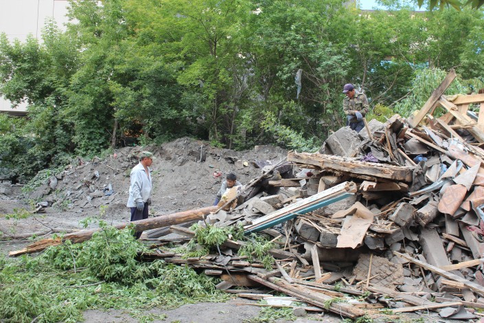 На месте, где сейчас ведутся работы по сносу частного домостроения, находятся две родственницы Адильбека Мейрамова.