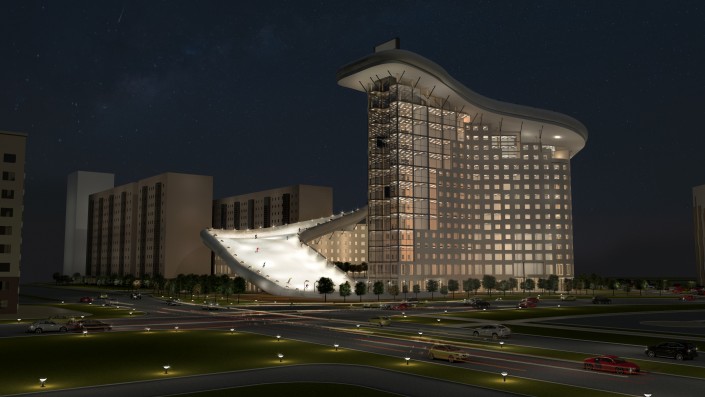 "Идея заключается в созданий на основе жилой застройки уникального комплекса с трассой для слалома. При реализации комплекса у него есть несколько достоинств. Это искусственно созданная в городе горнолыжная трасса. Она не имеет аналогов в мировой практике и поэтому может стать одной из достопримечательностей города", - отметили авторы проекта.