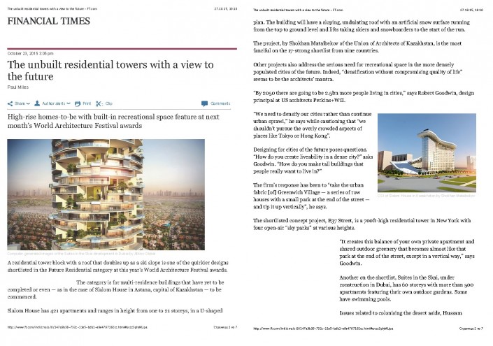 Проект "Дом слалом" казахстанского архитектора Шохана Матайбекова получил приз зрительских симпатий по версии Financial Times, сообщает корреспондент Tengrinews.kz.