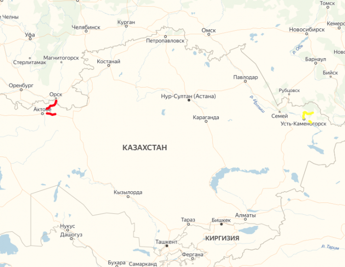 Актобе - Орск, 39-135 километры, участок дороги от села Шамши Калдаякова до границы РФ.