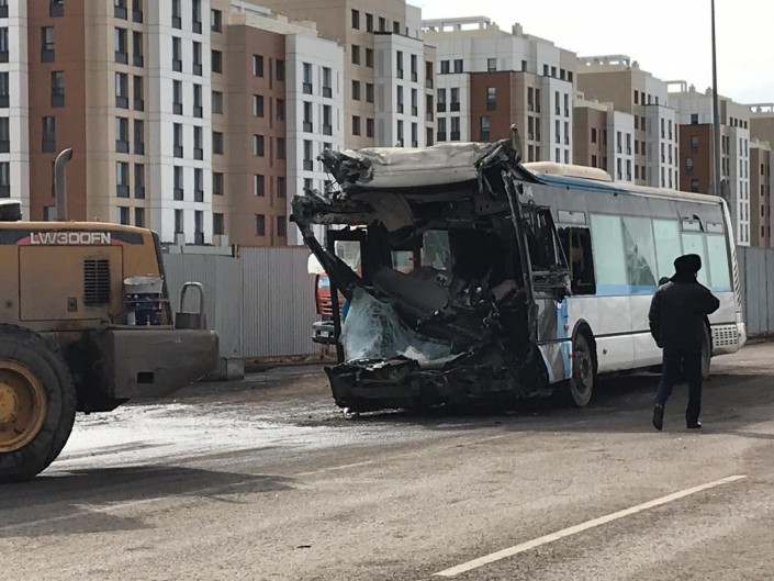 Ранее сообщалось, что 26 марта на пересечении проспекта Кабанбай батыра с улицей Улы Дала произошло ДТП с участием трех автобусов и легковых автомобилей. Автобус пригородного маршрута № 303 допустил столкновение с автобусом маршрута № 12. Были задеты автобус № 53 и машина скорой помощи.