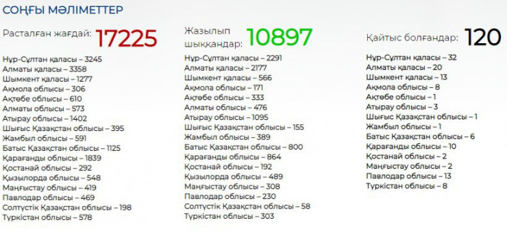 Итого по Республике Казахстан зарегистрировано 120 случаев с летальным исходом.