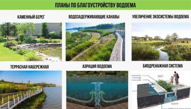 Отмечается, что также появится прогулочная инфраструктура: террасная набережная на прибрежных водно-болотных угодьях, будут сохранены и созданы условия для экоклимата с флорой и фауной.