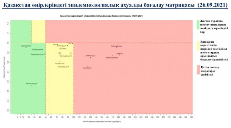 В "красной" зоне: города Нур-Султан, Алматы, Акмолинская, Карагандинская, Павлодарская области.