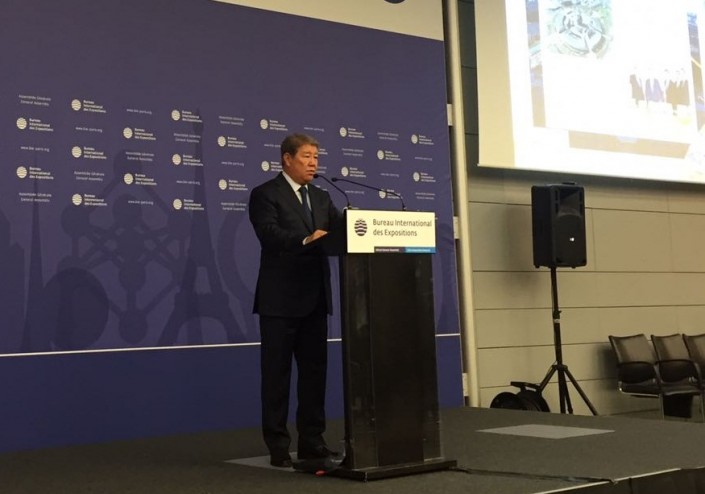 С докладом об итогах проведения Международной специализированной выставки EXPO-2017 в Астане выступил глава АО "НК "Астана ЭКСПО-2017" Ахметжан Есимов.