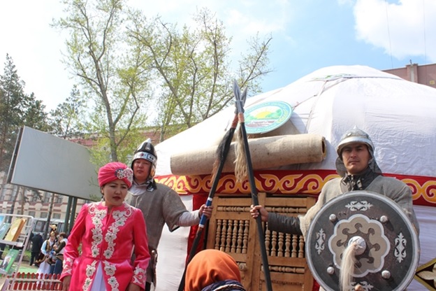 Каждый район и крупное предприятие Павлодарской области установили на центральной площади свою юрту. Прохожих завлекали цирковые артисты, батыры и красавицы в национальных костюмах, каждый желающий мог попробовать свои силы в спортивных состязаниях.
