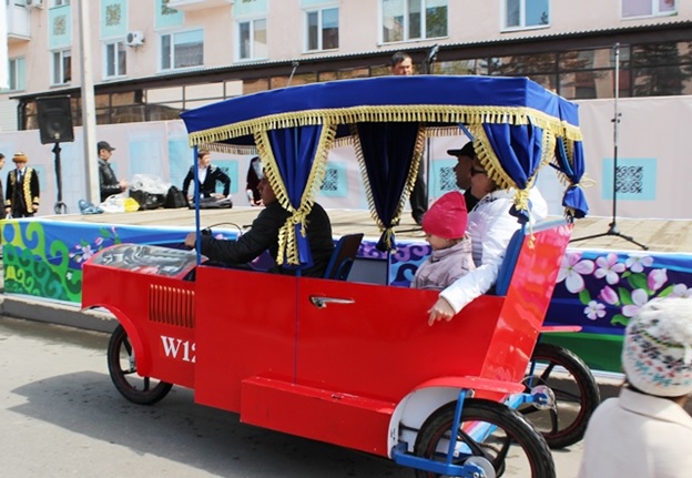От одного этноаула к другому желающих отвозили рикши на стилизованных велосипедах. Для маленьких павлодарцев работало несколько площадок с клоунами и аниматорами.