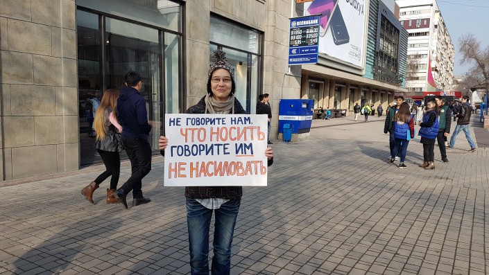 "8 марта и мы планируем отметить эту дату в соответствии с ее историческим значением. Мы хотим возродить традицию, собственно говоря, из-за которой появился праздник, это День борьбы женщин за равные права, против дискриминации на работе и на улице. Сейчас многие говорят, что этот праздник стал праздником женственности из-за того, что женщины всего уже добились и уже не за что бороться. Мы с помощью нашей акции хотим рассказать о том, чего именно не хватает современным женщинам. До сих пор остается разрыв в зарплатах до 31 процента. В составе правительства далеко не 50 процентов женщин. До сих пор существует угроза изнасилования", - объяснила суть акции активистка движения KazFem Вероника Фонова.