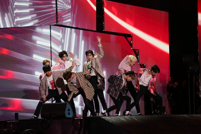 Южнокорейский бойзбенд PENTAGON зажег на сцене с музыкальными номерами Can you feel it, Sha la la, Pretty pretty, Naughty boy, Spring snow и Shine.