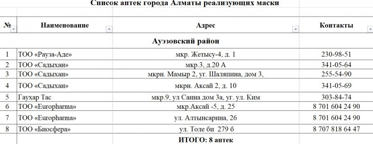 Опубликован список аптек с масками в Алматы, передает корреспондент Tengrinews.kz.
