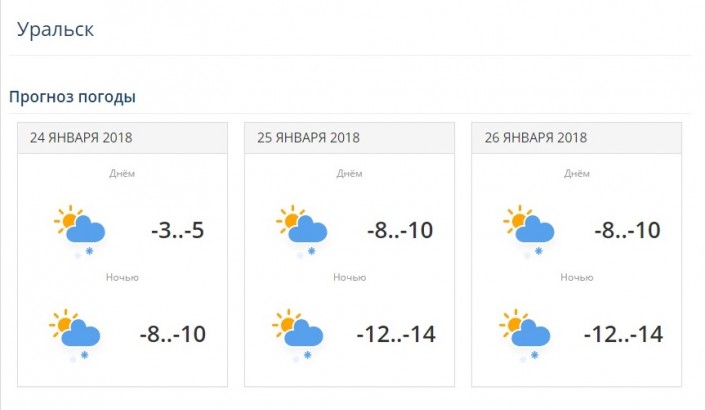 В двух городах на западе Казахстана - в Атырау и Уральске - выдалась относительно не холодная погода. В Атырау 24 января ожидается снег, -1...-3 градуса. 25 января и 26 января дневная температура понизится до 5-8 градусов мороза. В Уральске 24 января температура воздуха 3-5 градусов мороза. 25 и 26 января ожидается снег, дневная температура воздуха составит 8-10 градусов мороза.
