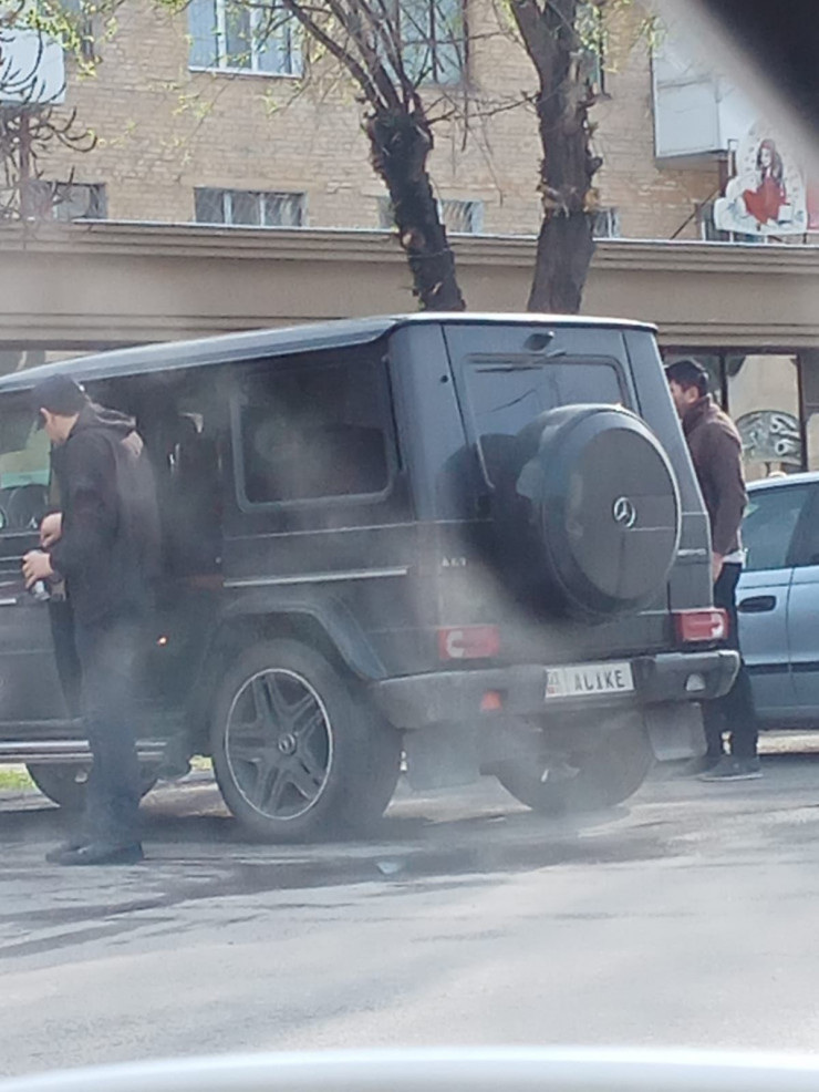 На редакционный WhatsApp-номер обратился читатель, он снял на фото машину с нестандартными ГРНЗ. По городу передвигался Gelandewagen с именным номерным знаком ALIKE. Причем это были номера соседней страны - кыргызстанского образца. Других цифр или букв на государственном регистрационном номерном знаке не было.