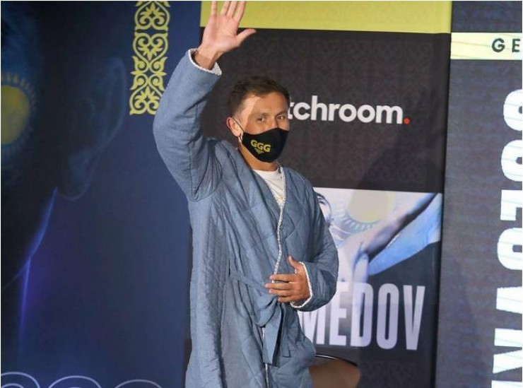 Казахстанский боксер Геннадий Головкин пришел на церемонию взвешивания перед боем с поляком Камилом Шереметой в казахском чапане, передает Tengrinews.kz со ссылкой на Vesti.kz.