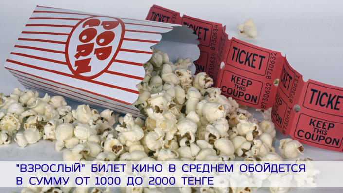 "Взрослый" билет кино в среднем обойдется в сумму от 1 000 до 2 000 тенге.