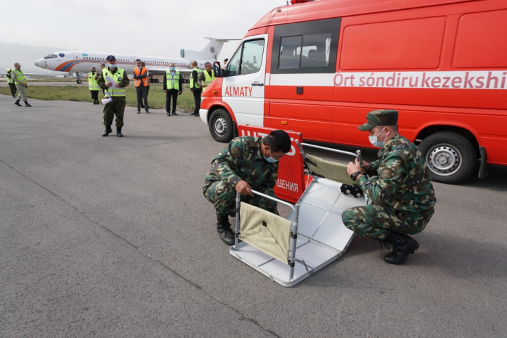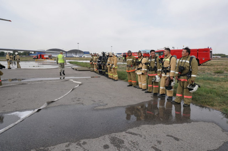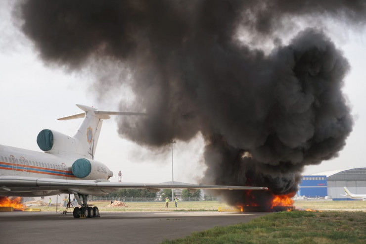 В учениях приняли участие службы аэропорта, городские службы и представители авиакомпании FlyArystan. Так, согласно легенде учений, после взлета воздушного судна А320 руководитель полетов получил от командира воздушного судна информацию об аварийной ситуации на борту.