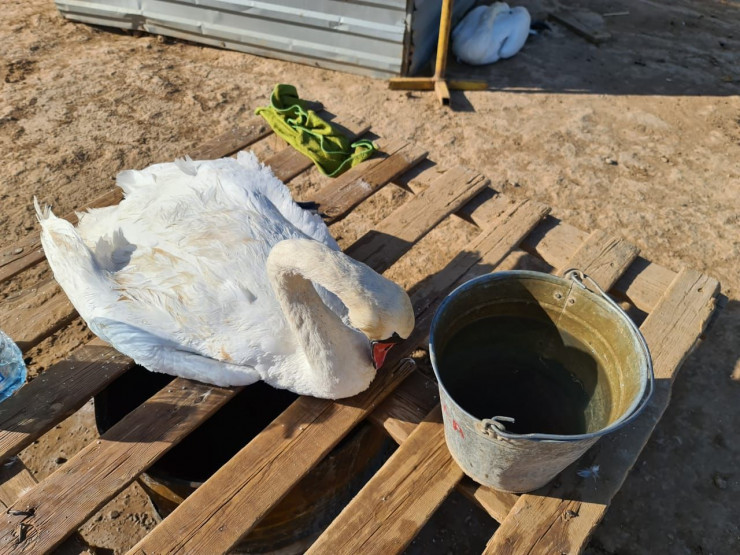 "Вероятно, всю ночь провели в грязной соленой воде и от этого пострадали. Рабочие увидели и сразу вытащили их, напоили водой, молодцы! Лебедям нужна была реабилитация и чистая речная вода", - сказала зоозащитница.