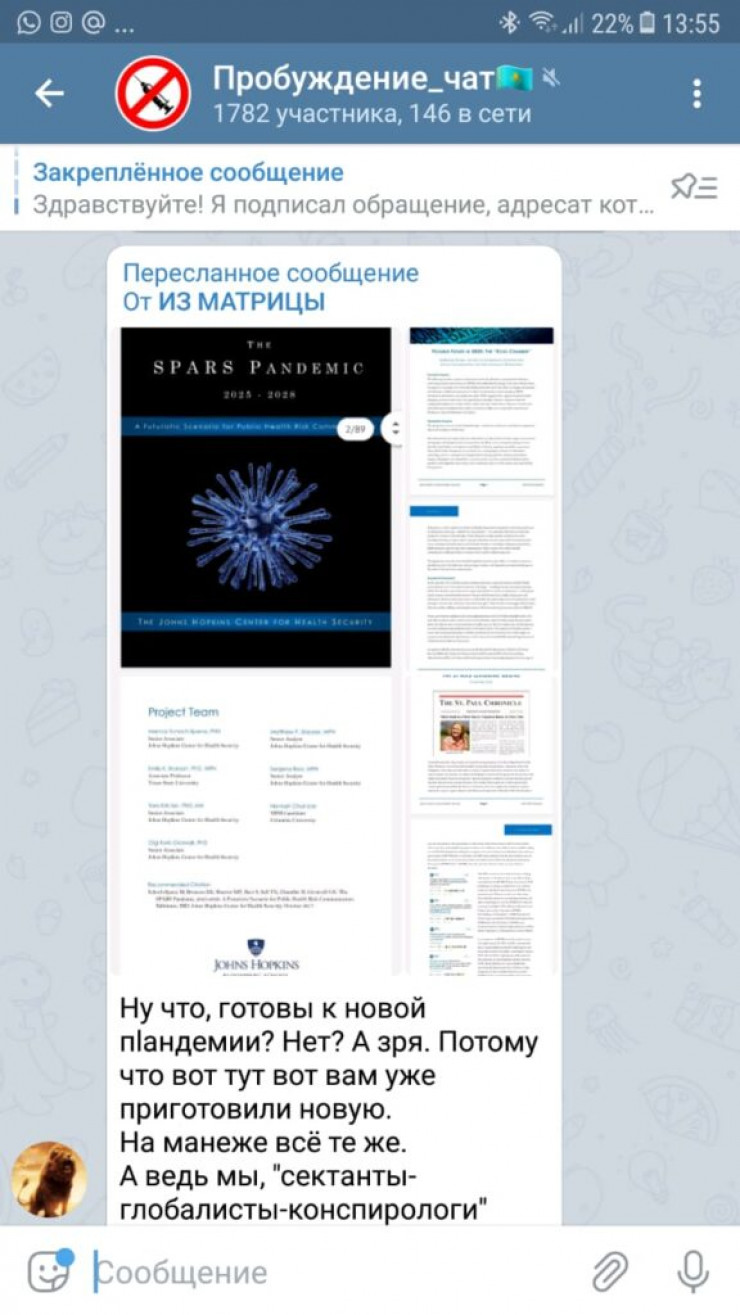 Казахстанцы пересылают друг другу найденный на просторах интернета документ под названием The Spars Pandemic 2025-2028. Некоторые предполагают, что это настоящий сценарий грядущей пандемии, который уже разработало мировое правительство.