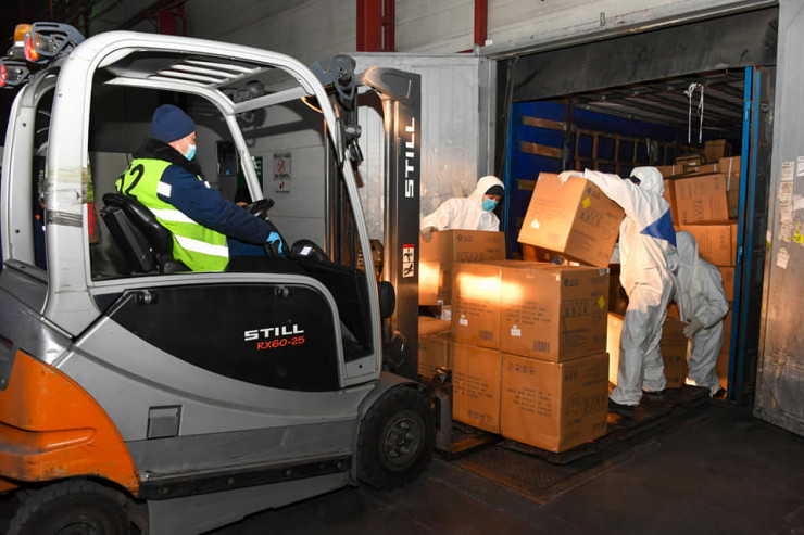 Вскоре несколько партий гуманитарной помощи прибыло к нам и из Китайской Народной Республики. Так, 2 апреля в аэропорту Алматы приняли первый груз. Это были тесты, перчатки, очки, халаты и другие медицинские защитные средства.