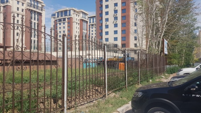 Местные жители рассказали корреспонденту, что из-за ограждения, которое опоясывает элитный комплекс, обитатели соседних домов не могут попасть к улице Сауран, из-за чего им приходится делать огромный крюк. Видимо, поэтому кто-то решил разместить такой плакат на заборе.