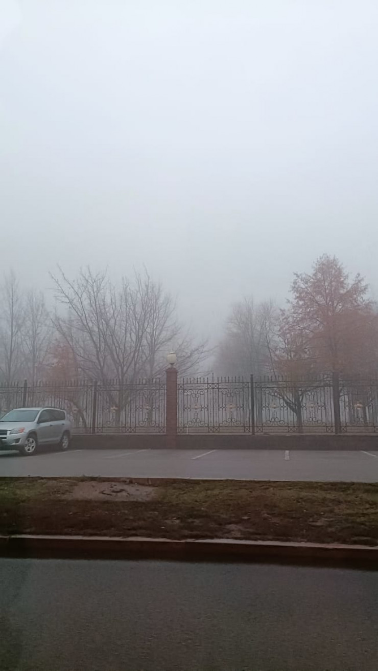 С самого утра видимость на улицах была не больше нескольких сотен метров. Такой "Сайлент Хилл" можно было наблюдать и в ближайших окрестностях города, в районе ЖК "Асыл Арман".
