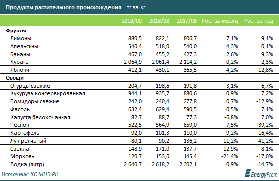 Среди фруктов заметно выросли в цене цитрусовые - лимоны (сразу на 7,1 процента за месяц) и апельсины (плюс 4,3 процента). Также подорожали бананы - на 2,6 процента за сентябрь.