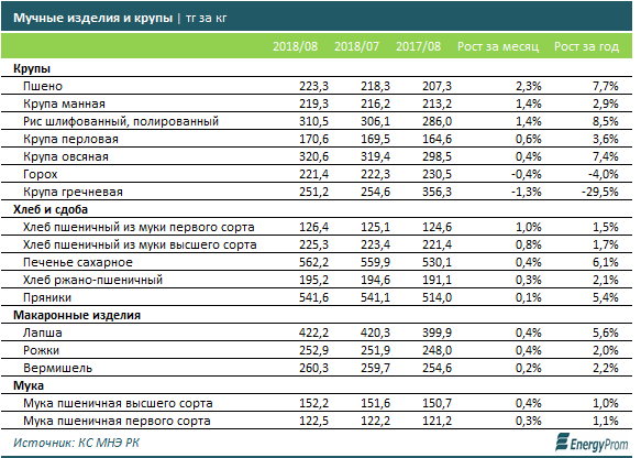 Среди мучных, хлебных и макаронных изделий значительного роста цен (более чем на 1 процент) за месяц не зафиксировано.