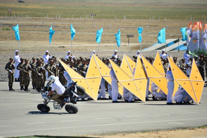 В честь лучших снайперов и артиллеристов в этот день на полигоне звучали патриотические композиции в исполнении звезд казахстанской эстрады, состоялся флешмоб военнослужащих и показательная стрельба.