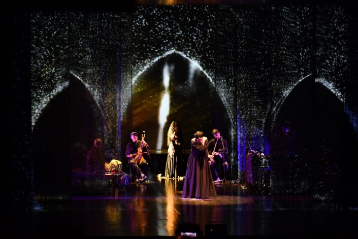 3D-проекции, которые привезли с собой музыканты, добились потрясающего эффекта, визуально увеличив сцену Холла Энергии, придав ей глубину и невероятную атмосферу. С самых первых нот свет заискрился в такт музыке, погрузив зрителей в темный ночной лес. Индийские барабаны и иранские национальные инструменты играли в неспешном ритме, аккомпанируя звонкому и глубокому голосу вокалистки Азам Али.