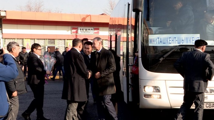 В полдень 5 января на старый автовокзал Шымкента прибыл пилотный автобус из Ташкента. На нем приехали официальная ташкентская делегация и узбекские журналисты, которые протестировали поездку на себе.