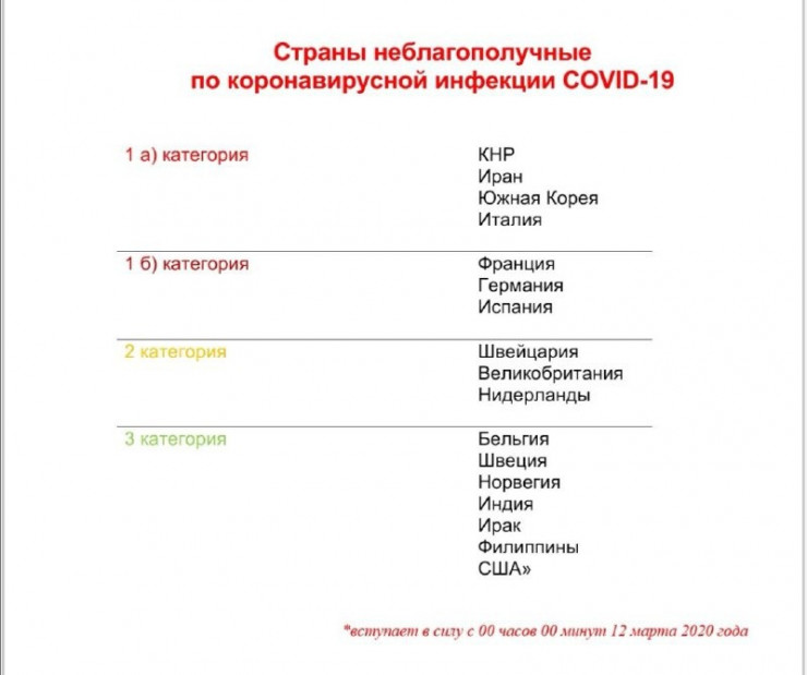 "К странам первой категории "а" относятся: Китай, Иран, Южная Корея, добавилась Италия. Первая категория "б": Франция, Германия и Испания. К странам второй категории относятся Швейцария, Великобритания и Нидерланды. К третьей категории - Бельгия, Швеция, Норвегия, Индия, Ирак, Филиппины, США. Ситуация по коронавирусу меняется каждые два дня", - добавил Бекшин.