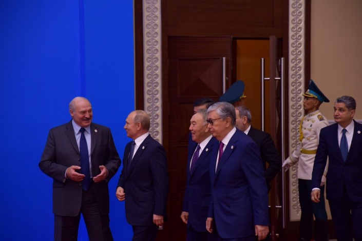 В мероприятии принимают участие Глава государства Касым-Жомарт Токаев, Президент Беларуси Александр Лукашенко, Президент Кыргызстана Сооронбай Жээнбеков, Президент России Владимир Путин, премьер-министр Армении Никол Пашинян.