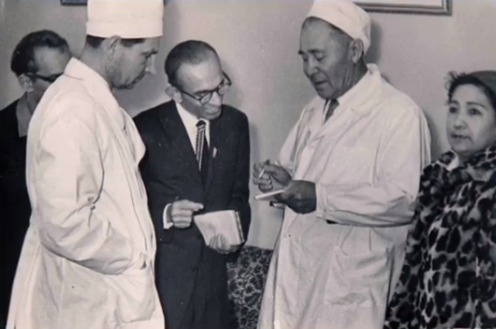 "Сызганов взялся за операцию. Мы ему: "Александр Николаевич, вы стойте, мы вам обнажим сердце, все приготовим". Идет операция. Потом Сызганов рассказывал, что там почти митрального отверстия не было. Настолько оно было узкое. Он большим пальцем какое-то нашел. Разрыв. Зажим приготовили. Зажим Брякин дал мне. А Сызганов там, в предсердии, палец держит. А я левое предсердие вместе с его пальцем и зажал. Сызганов заорал: "Ты что делаешь?" Исправили все, конечно. Больной выжил, прекрасно себя чувствовал после операции. Это была первая операция", - рассказывает заслуженный врач РК Андижан Измуханов.