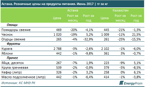 В июне, вместившем в себя открытие EXPO, а также период оразы и последовавшего айта, в Астане выросли цены на некоторые продукты питания, сообщает Energyprom.kz.