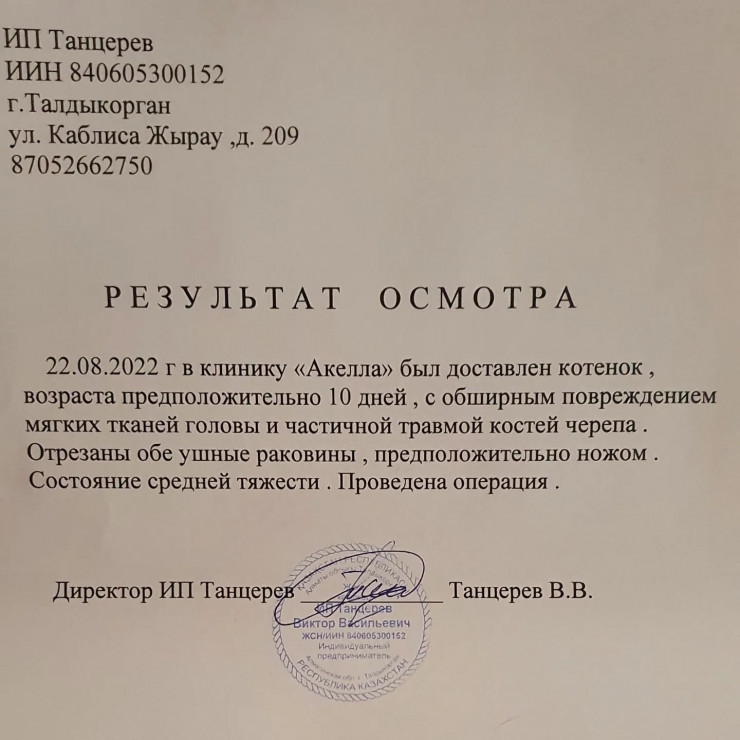 Незамедлительно зоозащитники доставили животное в ветеринарную клинику. Специалисты подтвердили, что уши были отрезаны острым предметом. Сейчас котенок находится под присмотром в одном из зооклубов Талдыкоргана.