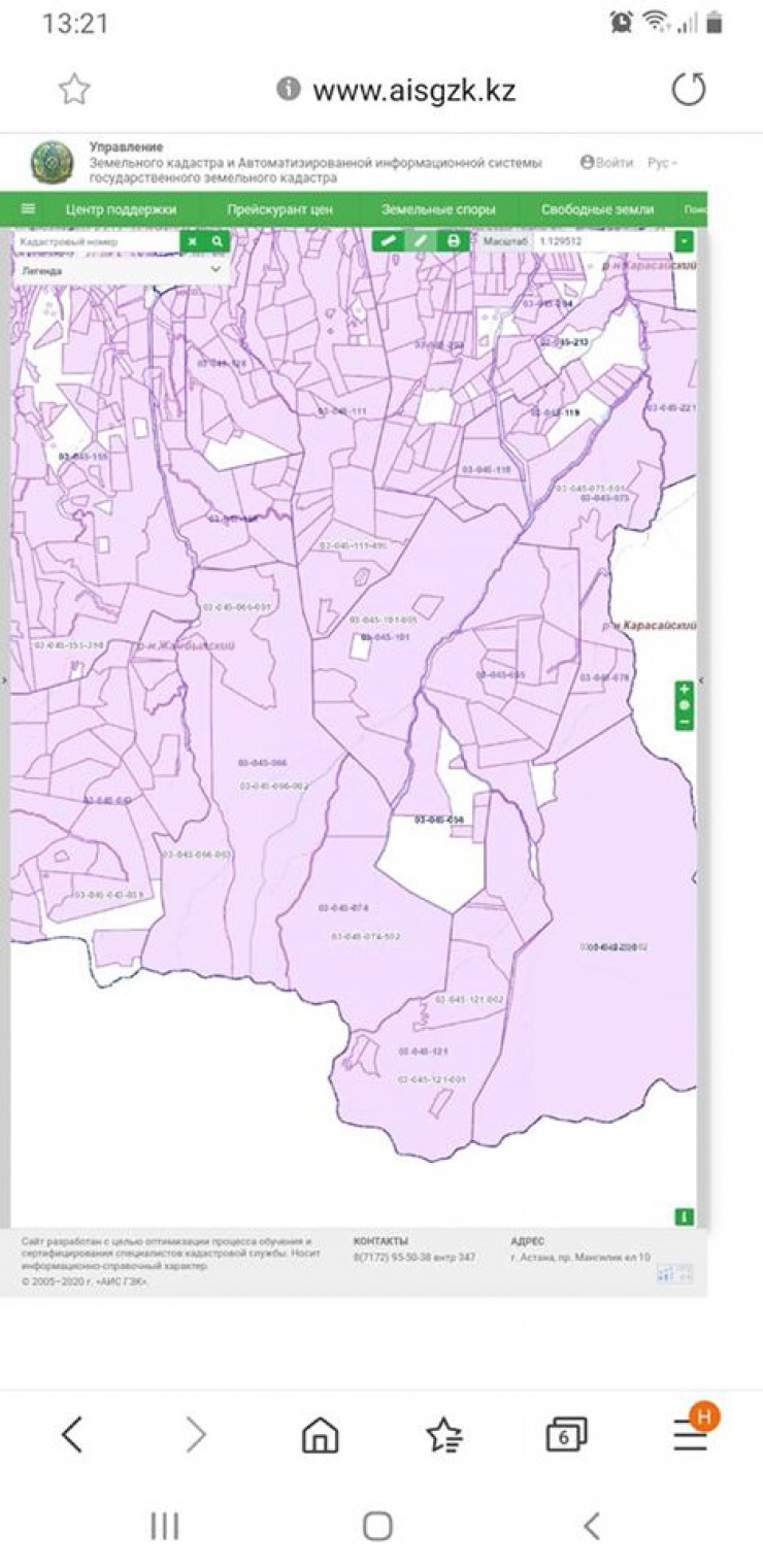 "Перед вами информация из базы АИС ГЗК, и на снимках отображены все земельные участки, которые расположены в предгорьях Национального парка "Иле-Алатау". Как вы видите, не осталось ни одного сантиметра свободной природоохранной зоны с естественной средой обитания для диких животных! Все передано в конкретные руки. У каждого земельного участка есть кадастровый номер, конкретное постановление акимата, конкретный госакт, которые у кого-то лежат в портфеле", - также отметил юрист.