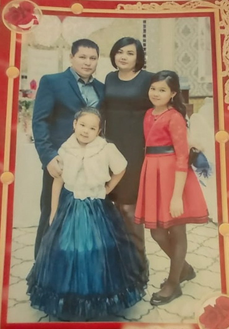 Азамат и Назгуль вместе со старшими дочерьми