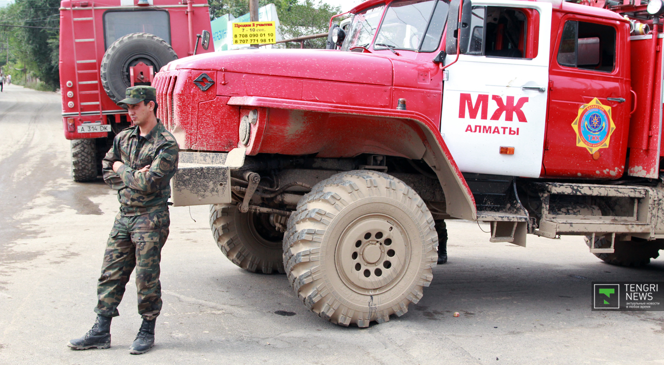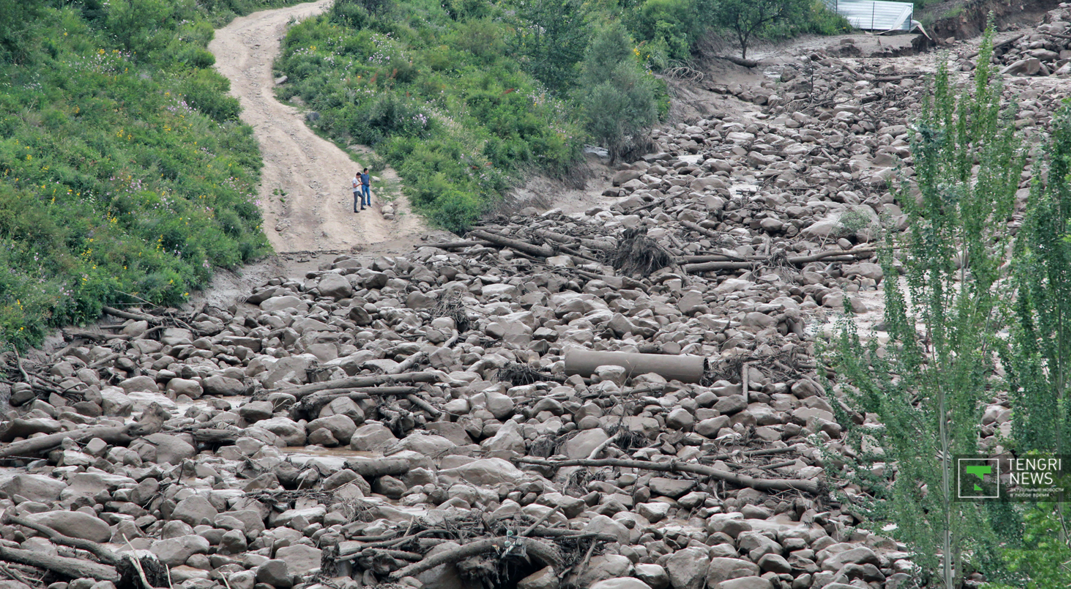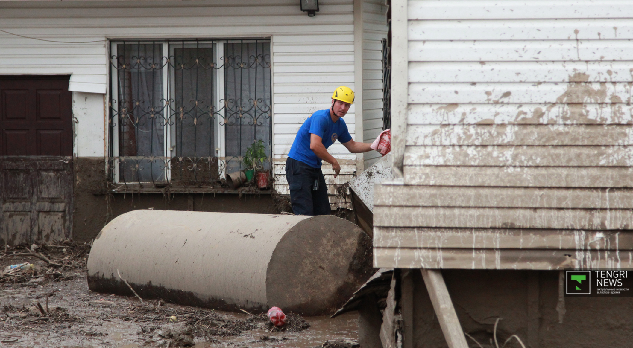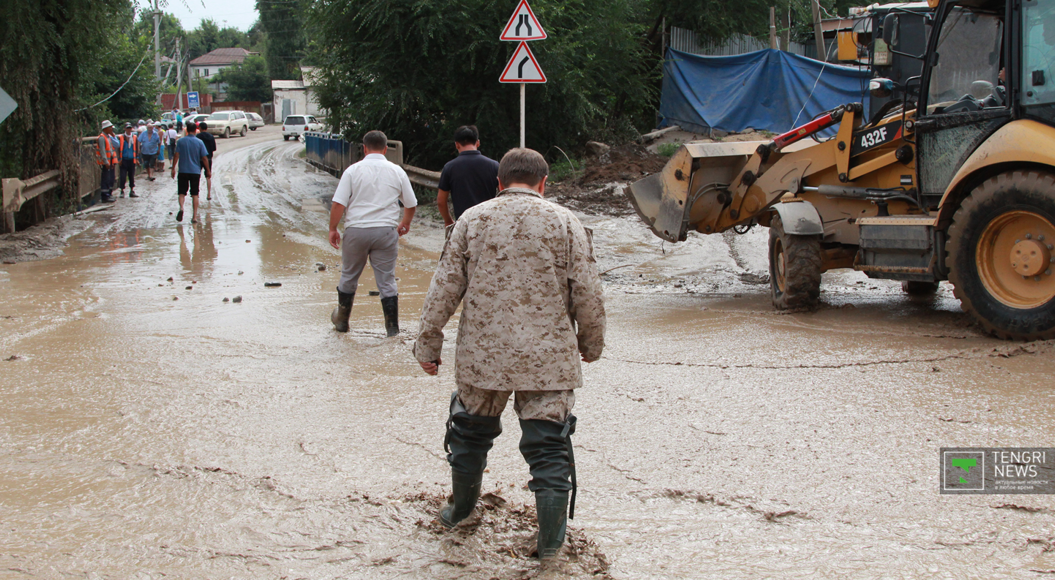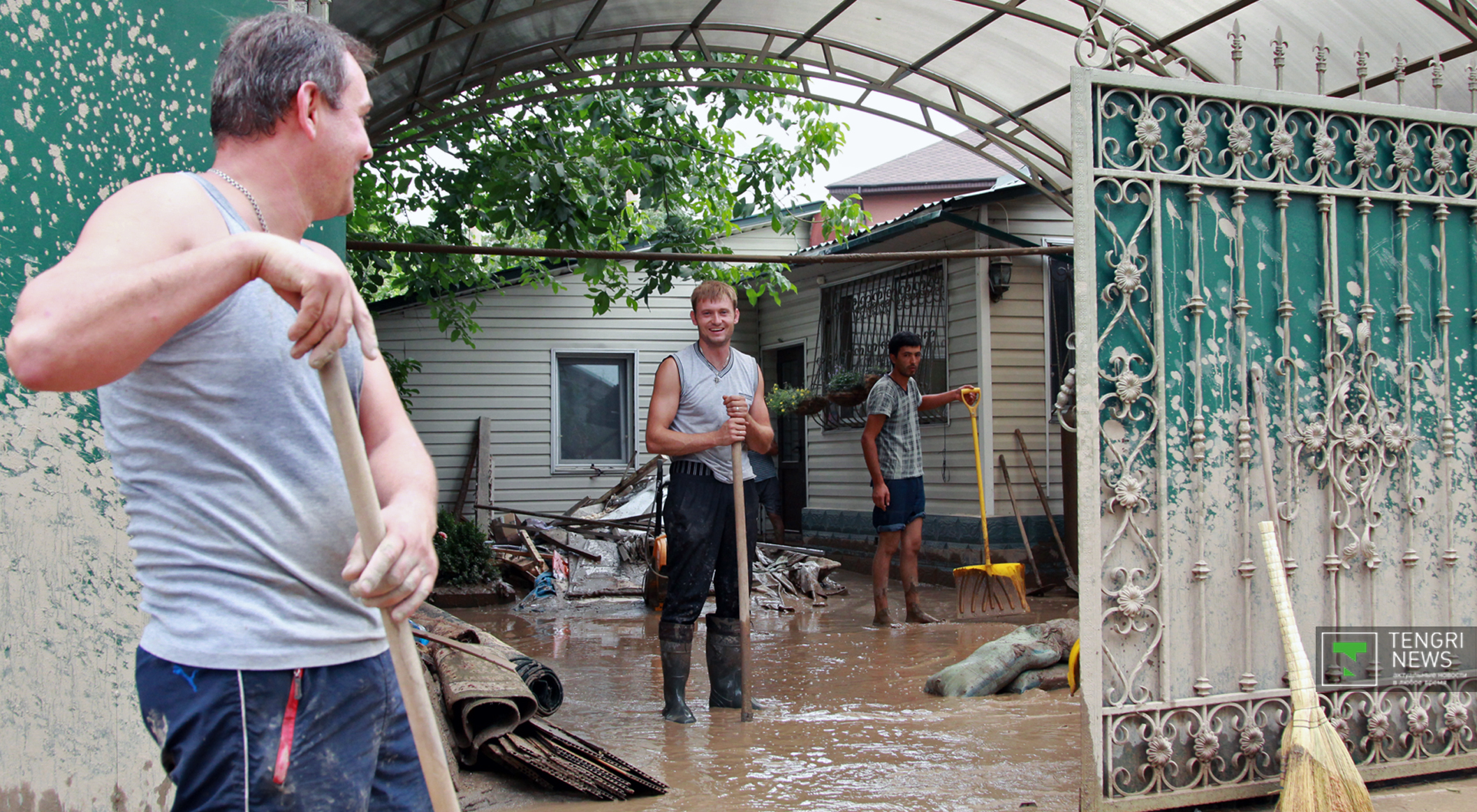 Журналисты Tengrinews.kz подоспели к месту ЧП после рассвета. К тому времени основной поток селя уже спал, и люди начали своими силами восстанавливать порядок. Им помогали подоспевшие на место сотрудники ЧС.