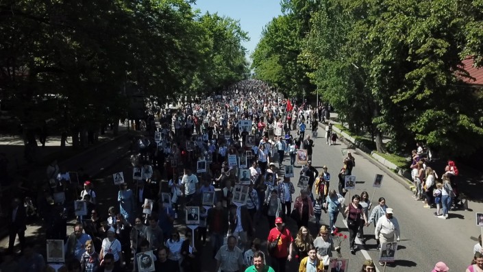 11.59 В Атырау шествие прошло вчера, 8 мая. По данным региональной службы коммуникаций, в нем участвовали 200 человек. Шествие "Бессмертного полка" началось с улицы имени Тлендиева и завершилось в парке "Победы". Память павших почтили минутой молчания.