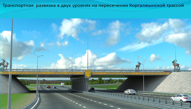 Похожая развязка появится на пересечении с Коргалжынской трассой. Обход также пройдет по верхней части по путепроводу.