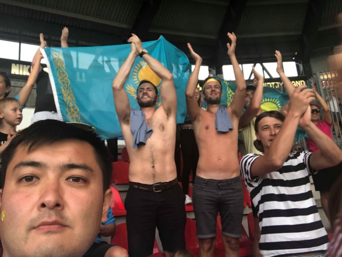 "На матч мы пришли с казахстанскими флагами в руках и нарисованными на лицах. Для болельщиков "Астаны" была выделена 1/3 часть гостевой трибуны за воротами. Когда мы пришли, удивились интернациональному составу наших болельщиков. Были и казахстанцы, которые приехали работать в Данию, были россияне и украинцы - любители футбола, пришедшие поддержать команду соседей. Были еще другие национальности. Больше всего нас удивила большая группа датчан, которые сидели в два ряда и активно поддерживали наших футболистов. Их лица были раскрашены полностью в голубой и желтый цвета. На голубых футболках они сами видно нарисовали солнце и орла. Придумали какие-то кричалки на датском, но четко выкрикивали имена наших ребят", - отметила Асель Исина.