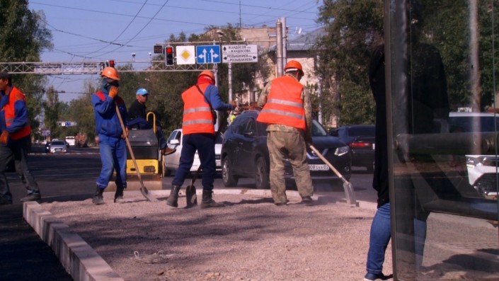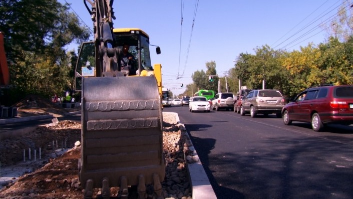 Также идет строительство остановочных павильонов посередине дороги между улицами Розыбакиева и Гагарина. На участках, где остановки поставлены посередине дороги, частные авто объезжают остановку с правой стороны. Между улицами Розыбакиева и Гагарина транспорт все еще едет по центру дороги, так как правая сторона еще не готова.