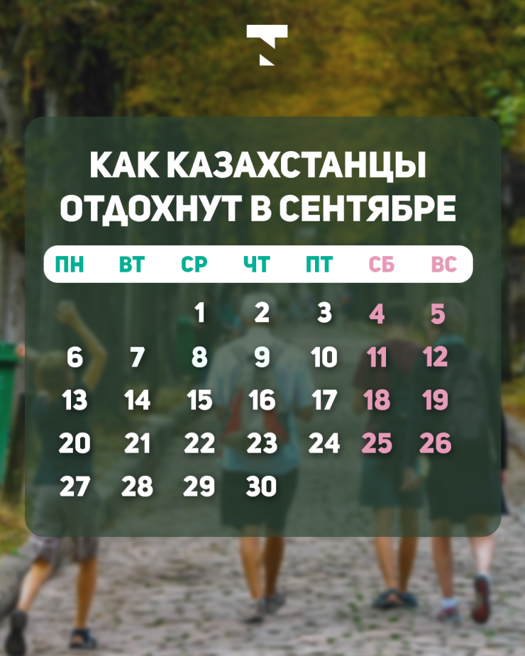 В сентябре казахстанцы, работающие по пятидневной рабочей неделе, получат 8 выходных дней, передает Tengrinews.kz.